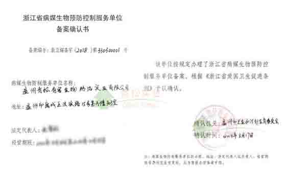 浙江省病媒生物備案證書(shū)